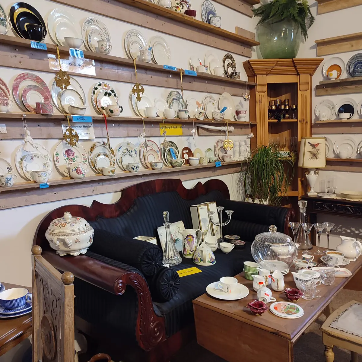 Bei uns findest du auf 300 m² eine große Auswahl an Markenporzellan, Silber- & Glaswaren. Insgesamt haben wir fast 600.000 Artikel im Sortiment – komm‘ doch einfach mal zu Staunen und Stöbern vorbei.